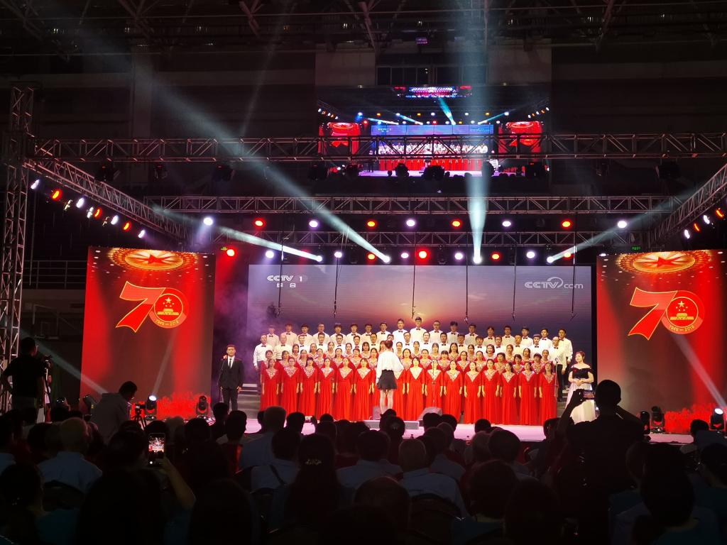 为弘扬爱国主义精神,唤起人们的红色记忆,使全校师生热情讴歌新中国成立70周年。我校于2019年9月27日在南校体育馆开展了“庆祝新中国成立70周年师生合唱比赛”。本次共有16支代表队伍参赛,每支参赛队伍由各院老师及其同学组成。