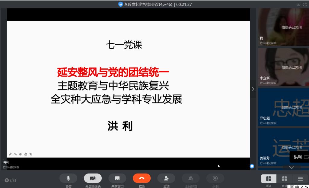 为庆祝伟大的中国共产党建党九十九周年,进一步巩固“不忘初心、牢记使命”主题教育成果,7月1日晚,学校副校长洪利为电控千亿国际网页版登录全体教工党员讲了一堂主题为《提高政治意识,强化师德师风》的党课。此次党课以线上方式开展。