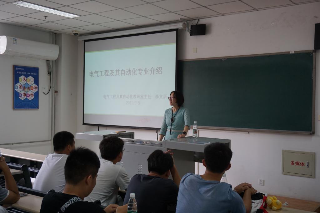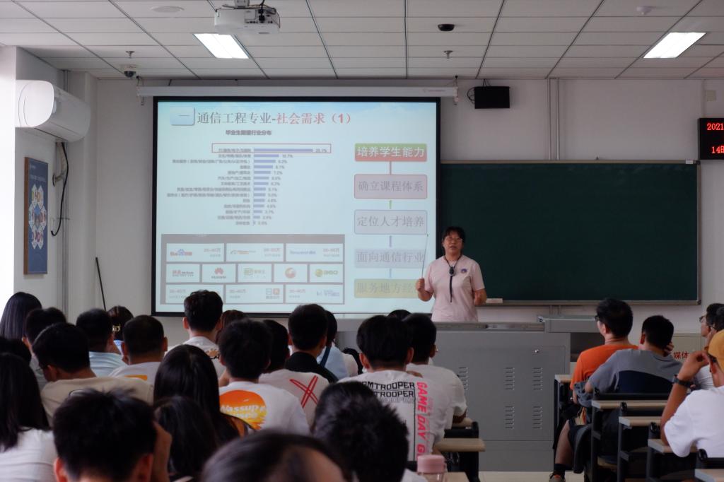 9月9日下午,千亿国际网页版登录于举行2021级新生千亿国际网页版登录和专业介绍、学业规划教育。电气专业教研室主任李立新、测控专业教研室主任吴燕雄、通信专业教研室主任贺秀玲三位老师分别为相应专业新生作学业规划教育讲座。