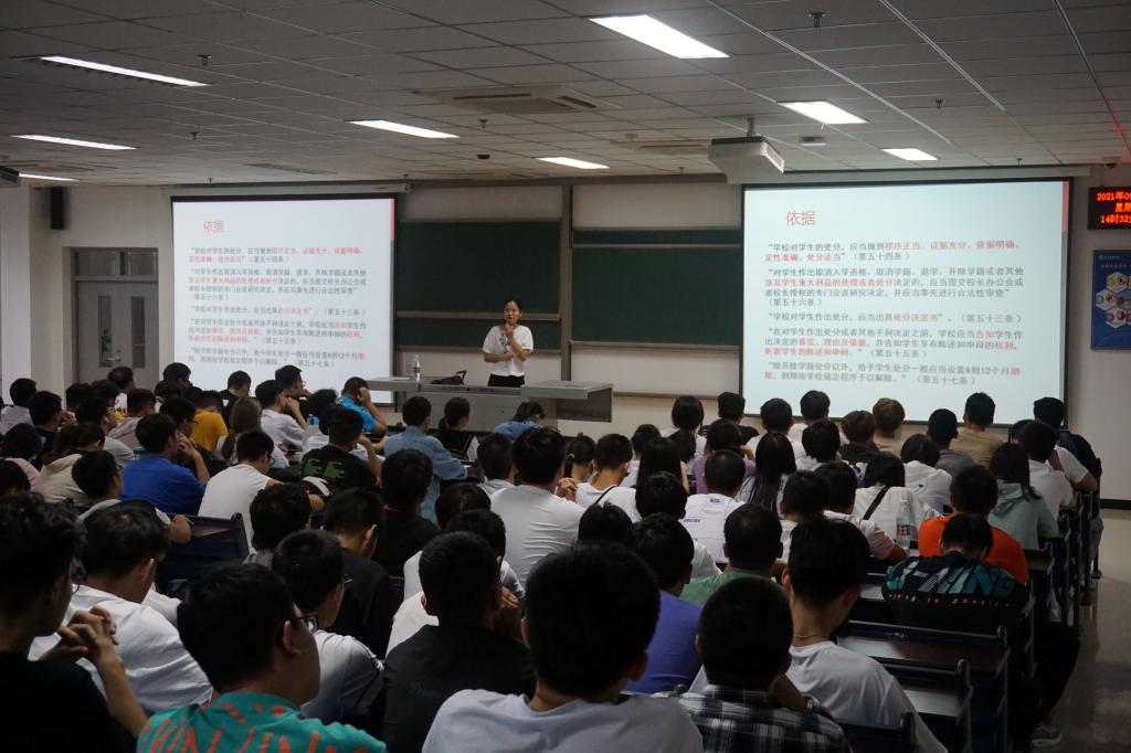 两位辅导员首先结合实际情况从总体国家安全观、国家安全形势、中国特色国家安全道路三个方面对国家安全体系进行了详细介绍,对新形势下国家安全风险进行了举例,并带领同学们观看了总体国家安全观视角下疫情防控的视频。提到员工在校期间的安全问题,老师强调每一位同学应该严格遵守我校疫情防控工作安排,并叮嘱同学们在接下来的中秋假期注意安全。最后对在校生处分条例与依据、申诉程序进行讲解,至此本次讲座圆满结束。