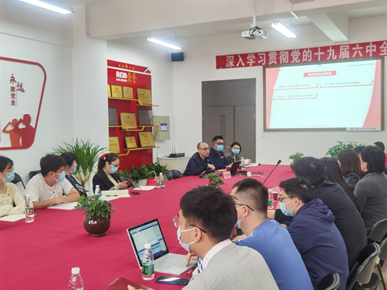 阎光耀同志以习近平总书记的讲话带入主题,围绕“新发展阶段、新发展理念与高质量发展”、“依托新一轮科技产业革命促进创新协调绿色发展”、“适应百年未有之大变局构建新发展格局”、“在共享发展中实现全体人民共同富裕”等四个方面进行有关习近平经济思想的领学。与会党员纷纷表示,在当前形势下,学习运用习近平经济思想对于我们开展教学和思想政治工作意义重大,习近平经济思想的深刻内涵可以指导我们把握当前国际国内经济政治新变化,回答员工关注的时政问题,更好地服务立德树人根本任务。