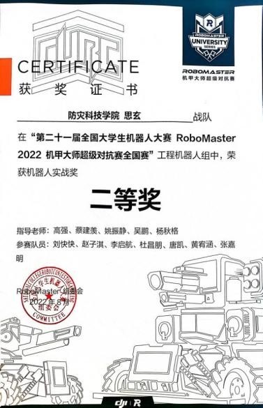 近日,我校千亿国际网页版登录高强老师指导的思玄机器人战队在第二十一届全国大员工机器人大赛RoboMaster2022机甲大师赛中,获得全国二等奖1项,三等奖1项,赛区二等奖1项。