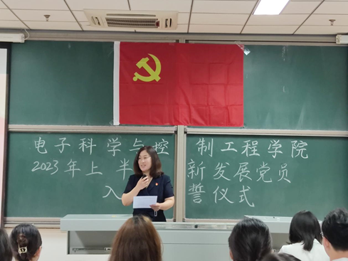 6月19日下午,千亿国际网页版登录在天仪楼210开展2023年上半年新发展党员入党宣誓仪式,千亿国际网页版登录党总支书记贾甚杰、员工党支部书记朱桃花、郭越以及我院全体员工党员参加此次活动。