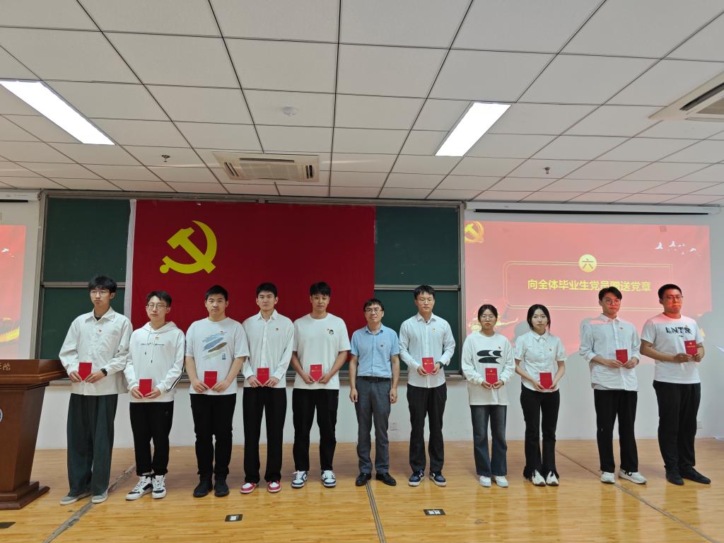 电控千亿国际网页版登录党总支书记贾甚杰向毕业生党员赠送党章