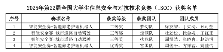 近日,2025年第22届全国大员工信息安全与对抗技术竞赛(ISCC)圆满落幕,我校员工在本次赛事中共荣获全国二等奖1项、三等奖2项、优秀奖1项,以及省级奖项5项。
