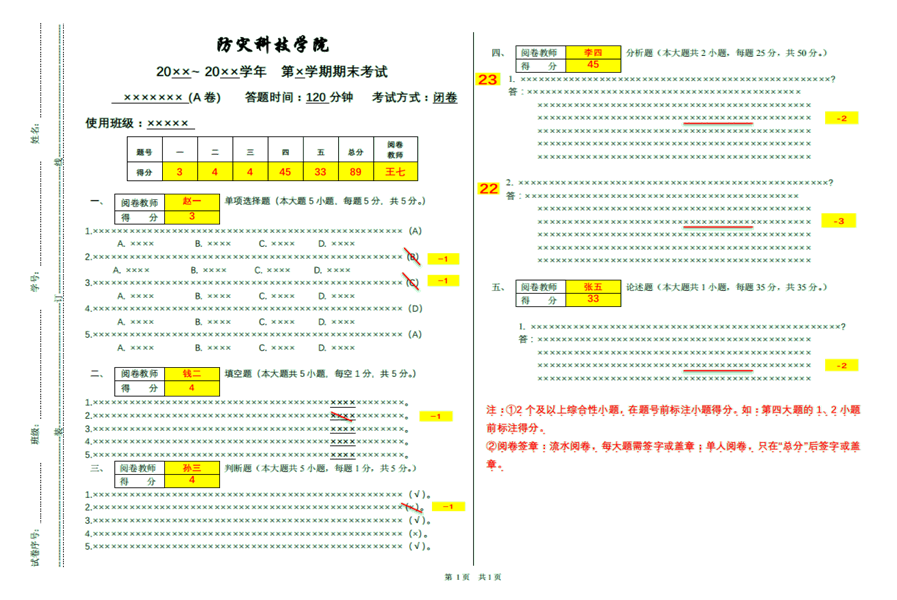 2.阅卷记分格式(参见阅卷参考模板)。