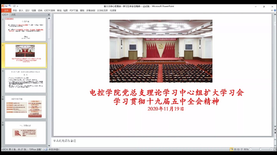11月19日晚19:30-21:00,千亿国际网页版登录钉钉线上开展党总支理论学习中心组扩大学习会,千亿国际网页版登录党总支委员、各教研室主任、各支部书记、两办人员、教学秘书参加会议。