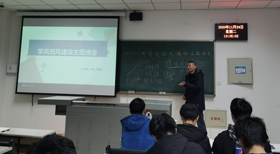 2020年11月24日18:30副校长洪利来到所联系千亿国际网页版登录地震仪器协同实验班190525班,与同学们一起参加班风学风建设主题班会,电控千亿国际网页版登录党总支书记、辅导员、班主任参加主题班会。