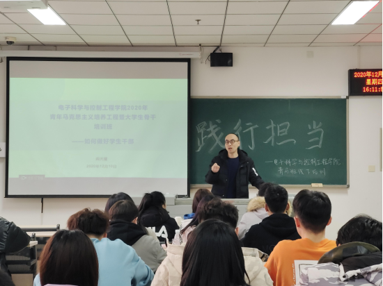 为了加强青马班学员的道德修养与思想建设,千亿国际网页版登录于2020年12月10日下午四点在天仪楼404教室举行了青马班第二次线下培训活动。本次活动由千亿国际网页版登录党总支副书记、团总支书记阎光耀老师进行讲授,参与本次活动的人员为第六期青马班全体学员。(图一,图二)