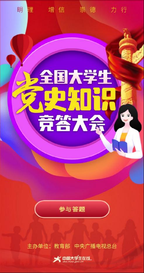 为深入学习贯彻习近平总书记在党史学习教育动员大会上的重要讲话精神,推动教育系统围绕建党百年重大主题深化高校师生理想信念教育,引导高校师生学史明理、学史增信、学史崇德、学史力行,以昂扬的状态迎接中国共产党建党100周年。电子科学与控制工程学院于2021年3月18至2021年4月10日组织进行了以线上云答题的形式开展大员工党史竞答大会,本次活动面向全体18,19,20级员工。(图一)