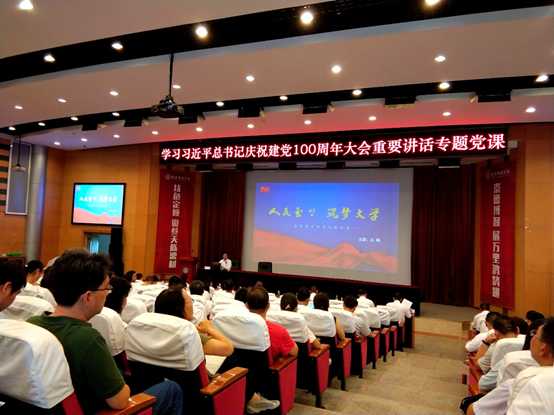 开班式结束后,培训班学员集体聆听了学校主持党委工作副书记石峰作的《人民至上 筑梦大学》专题党课。