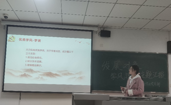 发展对象通过前期调研,主要围绕优良学风和不良学风的现实表现、不良学风的原因及解决方法、如何在学风建设中发挥党员先锋模范作用这几个方面展开做主题汇报,老师们做现场点评和指导,与同学们就学风展开热烈讨论。贾甚杰老师对此次活动总结,她对同学们就学风做的调研和思考给予了肯定,讲解了加强学风建设的重要意义,并对优良学风再次进行深入解读,鼓励党员和发展对象保持谦虚谨慎的作风,实际行动做到“向上向善,大气担当”,德智体美劳全面发展,建设好党员的良好形象,努力成为全班、全院乃至全校员工的榜样。