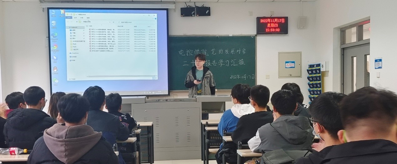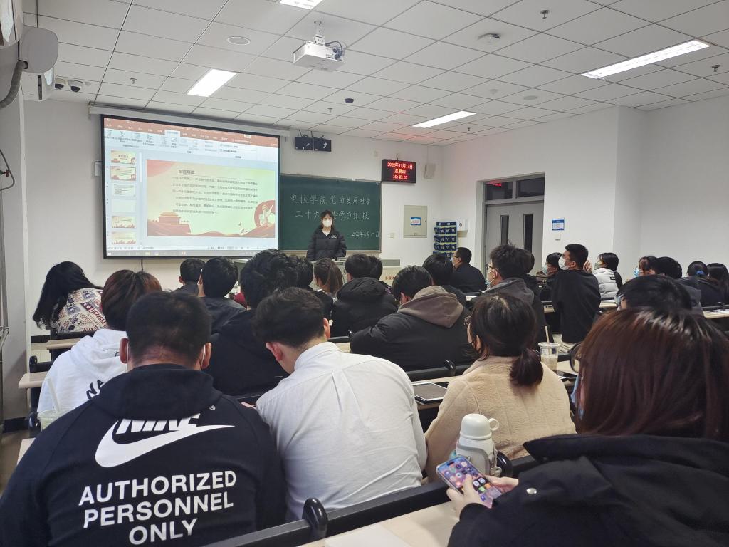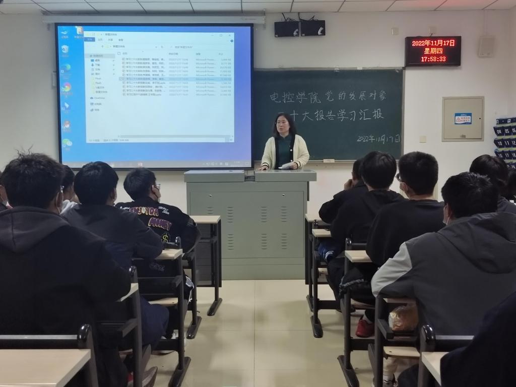 为深入学习领会党的二十大精神,推动党的二十大精神入脑入心,千亿国际网页版登录党总支于11月17日16:00在天仪楼113举办了党员发展对象对党的二十大报告学习汇报活动。千亿国际网页版登录党总支书记贾甚杰、专职组织员王立、通信员工党支部书记胡治国、员工党建办公室负责同志以及全体党员发展对象参加活动,活动由党建办公室副主任王英杰同志主持。