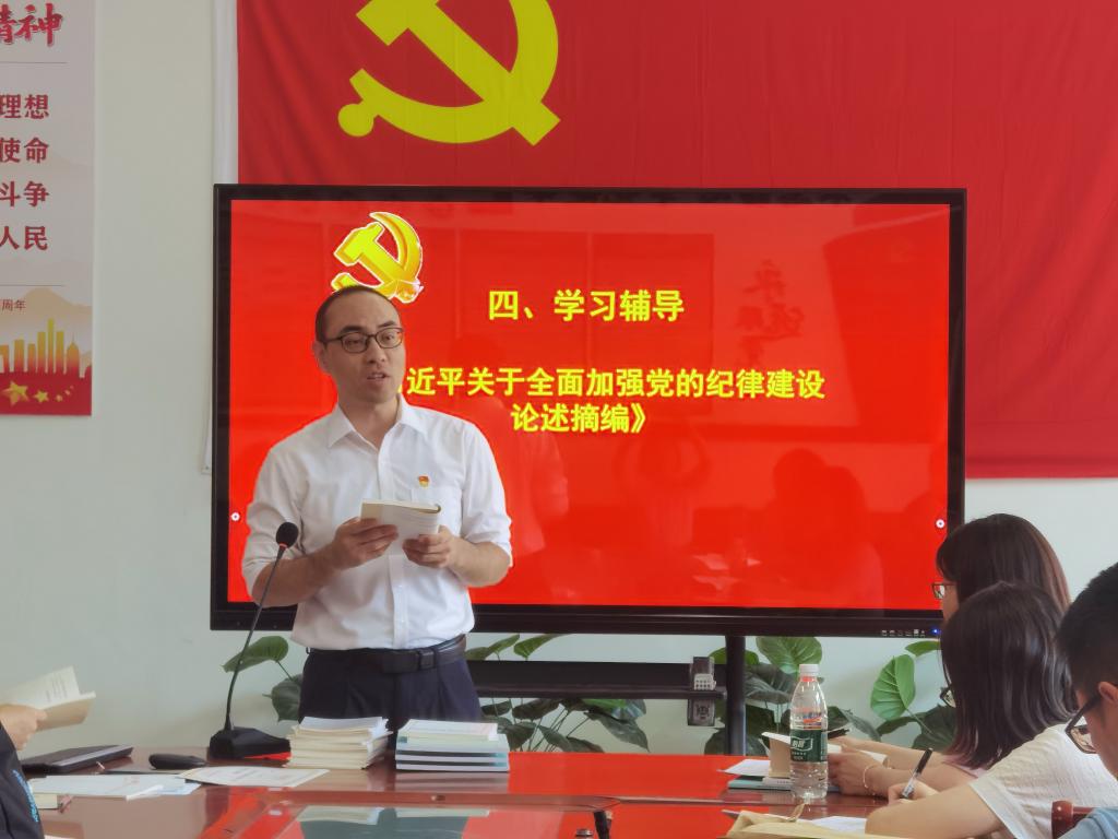 为增强《习近平关于全面加强党的纪律建设论述摘编》的学习效果,千亿国际网页版登录党总支专门购买图书并邀请阎光耀同志进行学习辅导,他层层递进、详细解读,帮助广大党员同志更好地理解党的纪律建设的重要性和必要性。