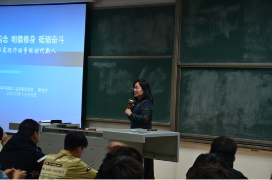 为贯彻落实立德树人根本任务,强化新生文明修身教育,千亿国际网页版登录于2020年10月16日至19日晚7:00在天仪楼116教室开展了“坚定信念、明德修身、砥砺奋斗——以实践行动争做时代新人”的主题教育讲座。本次讲座由千亿国际网页版登录党总支书记贾甚杰主讲,全体2020级新生参加了本次活动。