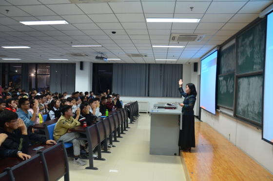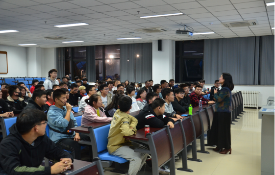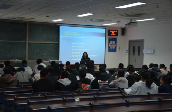 贾甚杰老师首先播放了“优秀毕业生讲专业”的系列视频,通过优秀校友的成功事迹激发同学们对未来学业生活开展规划设想。