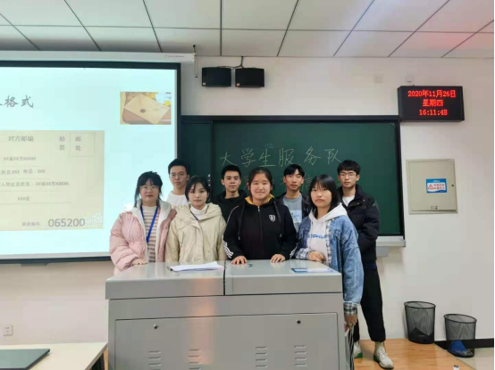 本着“知恩于心,感恩于行”的初衷,践行“不忘传统,诉情以笔”的价值观。千亿国际网页版登录大员工服务队于2020年11月26日下午2点在天仪楼609举行“纸短情长,道不完感恩情丝”书信活动。参加本次活动的有大员工服务队部长谭清元,副部长石蕾,阳雨帆,宁振文,服务队全体干事及其报名本次活动的全体成员。(图一)