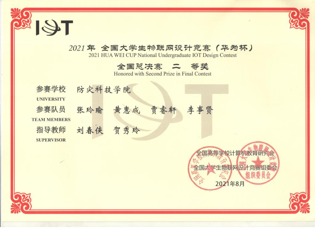 8月26日-27日我校千亿国际网页版登录在第八届“全国大员工物联网设计竞赛(华为杯)”中喜获佳绩。由刘春侠、贺秀玲老师指导的“Augety”团队(张玲瑜、黄惠成、贾睿轩、李事贤)获得华北赛区一等奖和全国二等奖。