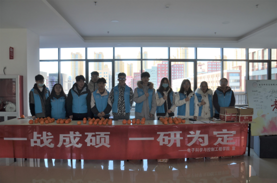 为鼓励2020年参加考研的学长学姐、助力考研,千亿国际网页版登录团总支员工会于2020年12月4日中午12点,在天仪楼三层大厅,组织开展了考研送祝福、助力考研的活动,团总支员工会各部门成员积极参与到活动中来,为参加考研的学长学姐免费发放了祝福大礼包:祝福橙子和考研文具袋。(图一)