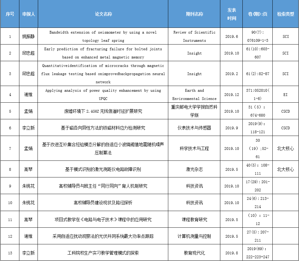 电控千亿国际网页版登录2019年度公开发表期刊论文统计